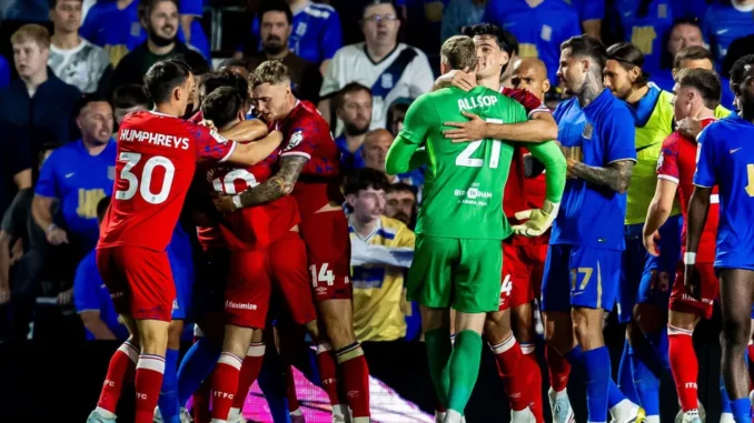 But the story wasn’t over. In the 95th minute, a controversial penalty was awarded to Ipswich when substitute Lyndon Dykes was adjudged to have handled the ball during a corner. Referee Andrew Kitchen pointed to the spot, sparking intense debate over the fairness of the ruling. George Hirst kept a calm head to rifle the penalty down the middle, earning Ipswich a dramatic equalizer.
